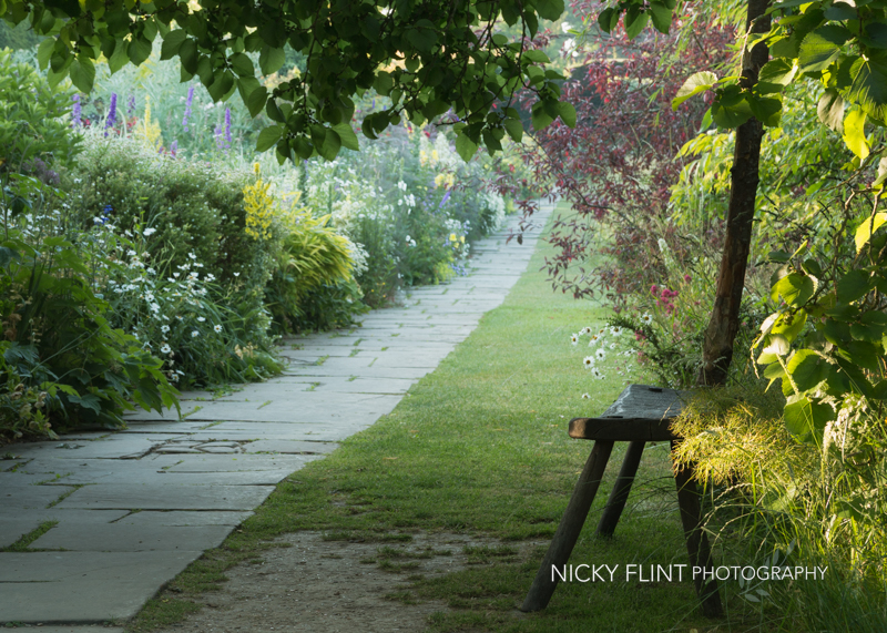 A well-worn patch of grass; testimony to the number of feet drawn to sit and contemplate the Long Border at Great Dixter, or just rest on the bench in the shade of the old mulberry tree.