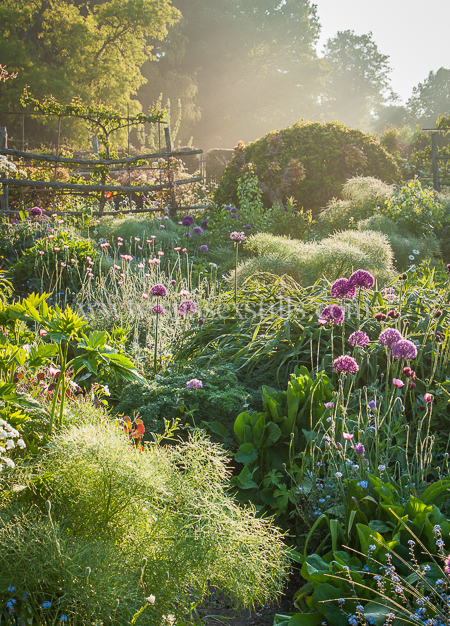 On a magical midsummer’s morning; perfectly still and clear with the fresh scent of flowers and foliage in the air, quiet but for birdsong, gossamer traces of dew on fennels and alliums and with the warmth of the early morning sun on my face, it was truly entrancing to be in the High Garden at Great Dixter.